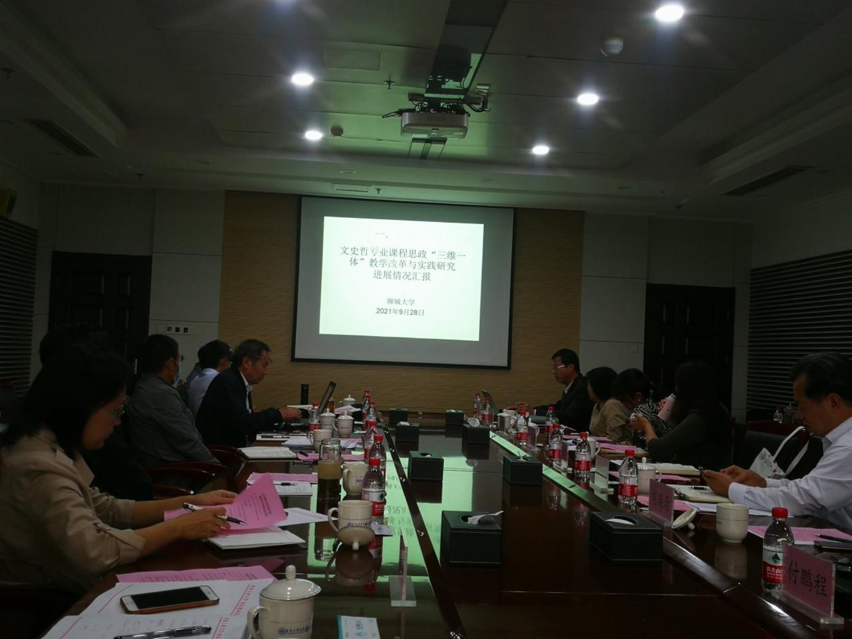 永利唐院长作为重大子课题负责人汇报了“文史哲专业课程思政‘三维一体’教学改革与实践研究”项目研究进展情况。唐院长从“三三三”人才培养模式、文史哲类专业课程思政教学设计主要内容与方法、人才培养方案设计思路、教学改革研究整体思路等方面介绍了文史哲专业课程思政建设与研究,并在取得一定成果的基础上总结思考,提出了下一步工作思路。