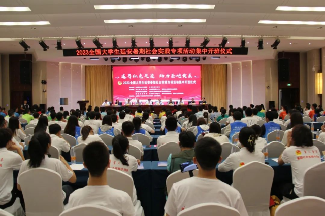 7月26日上午,“追寻红色足迹、助力圣地发展”2023年全国大学生延安暑期社会实践集中开班仪式在延安宾馆顺利举行,服务队全体成员参加了本次会议。