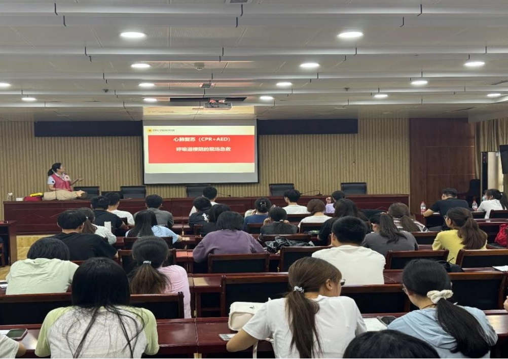 活动负责人孙悦将整理好的有关心肺复苏、人工呼吸、海姆立克急救法以及急救仪器使用方法的资料投放在PPT上,方便参与者观看。接着,孙悦先向参与者说明举办此次活动的目的是宣扬急救知识,使参与者加深对红十字会以及急救知识的认识与了解。孙悦介绍此次活动的流程,主要分为四个部分:理论授课、示范教学、参与者互动和理论实操考核等环节。红十字救护师围绕心肺复苏术、AED使用、呼吸道梗阻、常见急症和意外伤害等内容,用通俗易懂的语言向参训学子进行系统性讲解,使用模拟假人及其他救援工具,对如何判断受伤者意识状态、进行胸外按压和人工呼吸等技能进行详尽地演示和个别指导,确保参与者能够精确和有效地执行每一步骤。这次培训利用理论教育、实践演练及互动交流等多种手段,显著提高参与者的急救意识和实际救助能力。参与者们在活动过程中积极参与,配合活动负责人回答相关问题,并就自己对急救的看法以及参加此次活动后的感受发表了自己的观点。