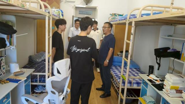 新学期伊始,为全面了解学生返校后的生活状态与需求,排查宿舍安全隐患,营造安全、和谐、温馨的住宿环境,8月31日,永利集团88304官网党委副书记、副院长乔华军携全体辅导员开展新学期宿舍走访活动。