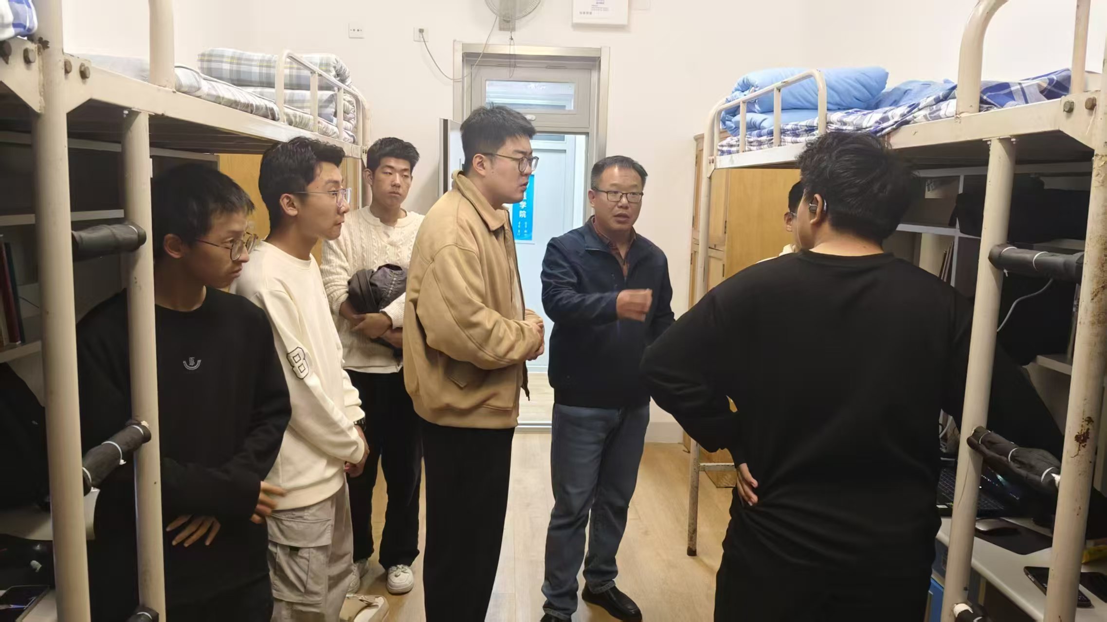 学院领导与老师在走访中与学生细心交谈,既聚焦宿舍生活与安全、查看消防设施及卫生状况、倾听学生对宿舍管理的意见,也关注学业适应困惑。乔书记结合案例强调用电规范、防火防盗要求及违规电器禁令,引导学生将安全意识融入日常;于进老师鼓励学生通过共同整理内务、举办小型分享会等,把宿舍打造成成长“实践课堂”;徐盛楠老师针对大学生活适应问题,建议主动社交、保持健康生活方式并做好心理调适;刘紫玮老师为专业课学习难题支招,提议组建学习互助小组、充分利用图书馆与网络资源,践行理论与实践相结合的方法,老师们还认真记录学生诉求,让大家切实感受到学院的关怀与支持。参与学生刘锦妍表示深受触动,将把领导老师的建议转化为行动,以更饱满的热情投入专业学习与社会实践。