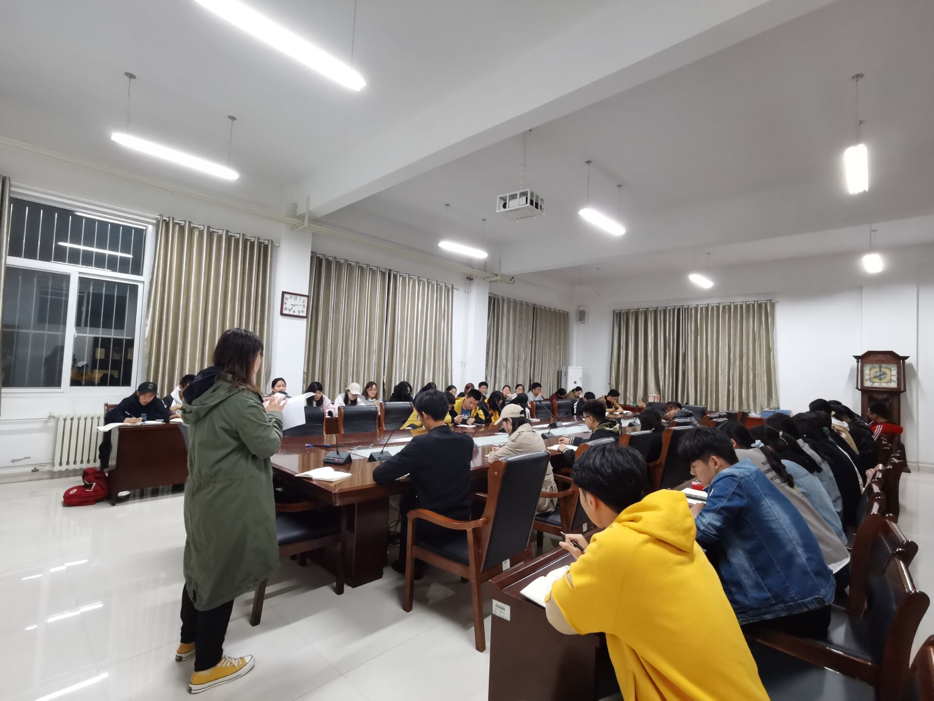 朱晓涵阐述了国家助学金发放标准以及注意事项。并根据各班家庭困难学生具体情况,切实分配助学金名额,务必做到公平公正。朱晓涵强调各班班长和团支书在资助工作中要以饱满的热情和积极的心态对待,同时要保护他人隐私,力求将资助工作做到规范、严谨、高效、精准。最后程德香强调资助工作要秉承“不让一个学生因家庭经济困难而失学”的初心,切实提高国家助学金的使用效率,使每一个家庭经济困难的学生拥有圆大学梦的机会。