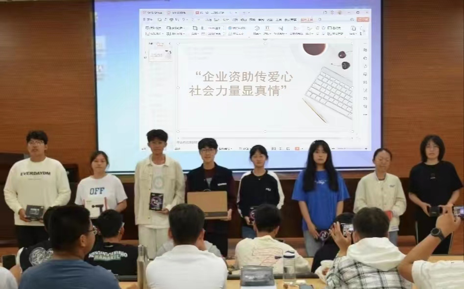 活动伊始,组织者讲述了活动目的及流程,并号召大家奉献爱心。随后,山东学创信息科技有限公司代表为品学兼优的家庭经济困难学生颁发学习用品、电子产品等。公司代表人表示期待与政管学院的再次合作,并希望同学们不懈努力,以更加饱满的精神状态投入到学习中去。受资助同学刘炳辉表示:“我非常感谢山东学创信息科技有限公司对我们的支持和鼓励,我深知家庭经济困难,但我也知道只有通过努力学习,才能改变自己的命运。再次感谢社会各界对我们的关心和支持,我会倍加珍惜这次机会,用优异的成绩回报大家的关爱。”    此次活动旨在帮助更多品学兼优的贫困大学生解决经济困扰,让他们能够专心学业,实现梦想。同时,也希望通过这个活动,唤起社会各界对家庭经济困难大学生的关注,进一步推动教育公平和人才发展。相信在社会学校的共同努力下,这些品学兼优的学子一定能够顺利完成学业,胸怀感恩之心,成为有担当、有责任心的社会公民,实现自己的人生价值。