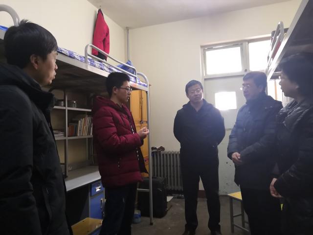 来到学生宿舍,庄波亲切的询问了同学们冬季御寒物品的置办情况,叮嘱他们一定要注意防寒保暖,教育他们要互相帮助,共同提高。唐明贵提醒同学们要与父母、老师等随时保持联系,做好防寒保暖,为自己的生命财产安全负责。季昌伟深入了解了同学们的勤工助学情况,提醒他们要劳逸结合,调整好作息时间。宋义明和程德香也对同学们的生活、学习等方面进行了积极交流,勉励他们在平凡的岗位中创造不平凡的成绩,让自己的大学生活变得更加充实与多彩。同学们纷纷表示非常感谢学院的关怀,并保证不辜负学院领导和老师的期望,认真工作,严格遵守学校和单位的规章制度,重视自身安全,让家长和老师放心。