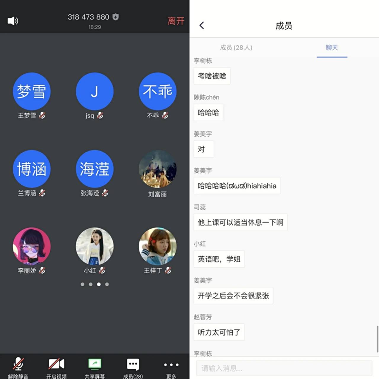 活动开始后,同学们在负责人的引导下,根据提前发布的会议号与登录密码进入平台。驻班党员就疫情阻击战中体现的民族精神、疫情对国际形势的影响等问题发表了自己的看法,着重强调了民族精神的弘扬,不仅要靠一线奋战的医护人员,更需要国民同舟共济、众志成城,凝聚全民战力量,同时,鼓励全体成员学习并发扬雷锋精神,积极传递温暖与关怀。驻班党员邀请同学们共同讨论交流了网课学习过程中遇到的问题,针对同学们的课程学习情况提出具体建议,强调网课学习不能怠慢,要以积极的心态对待,并针对同学们提出的问题,如:课堂笔记的使用、课件重点的把握、学习效率的提高等做出详细解答。此外,驻班党员呼吁同学们提前为开学做准备,规律地调整作息时间以适应课程安排。
