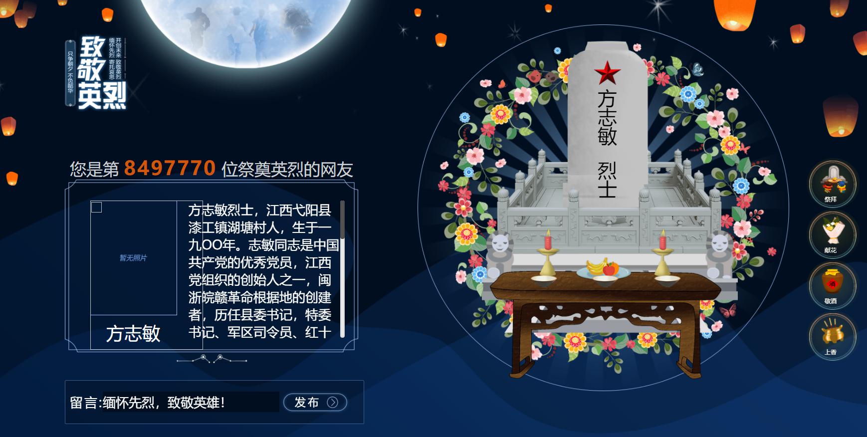 在活动中,党员教师通过“中华英烈网”祭扫平台,向烈士敬献花篮,并进入英烈纪念馆,通过祭拜上香、留言寄语等方式寄托对先烈的深切哀思和崇高的敬意,向英烈表达崇敬之心和感念之情。