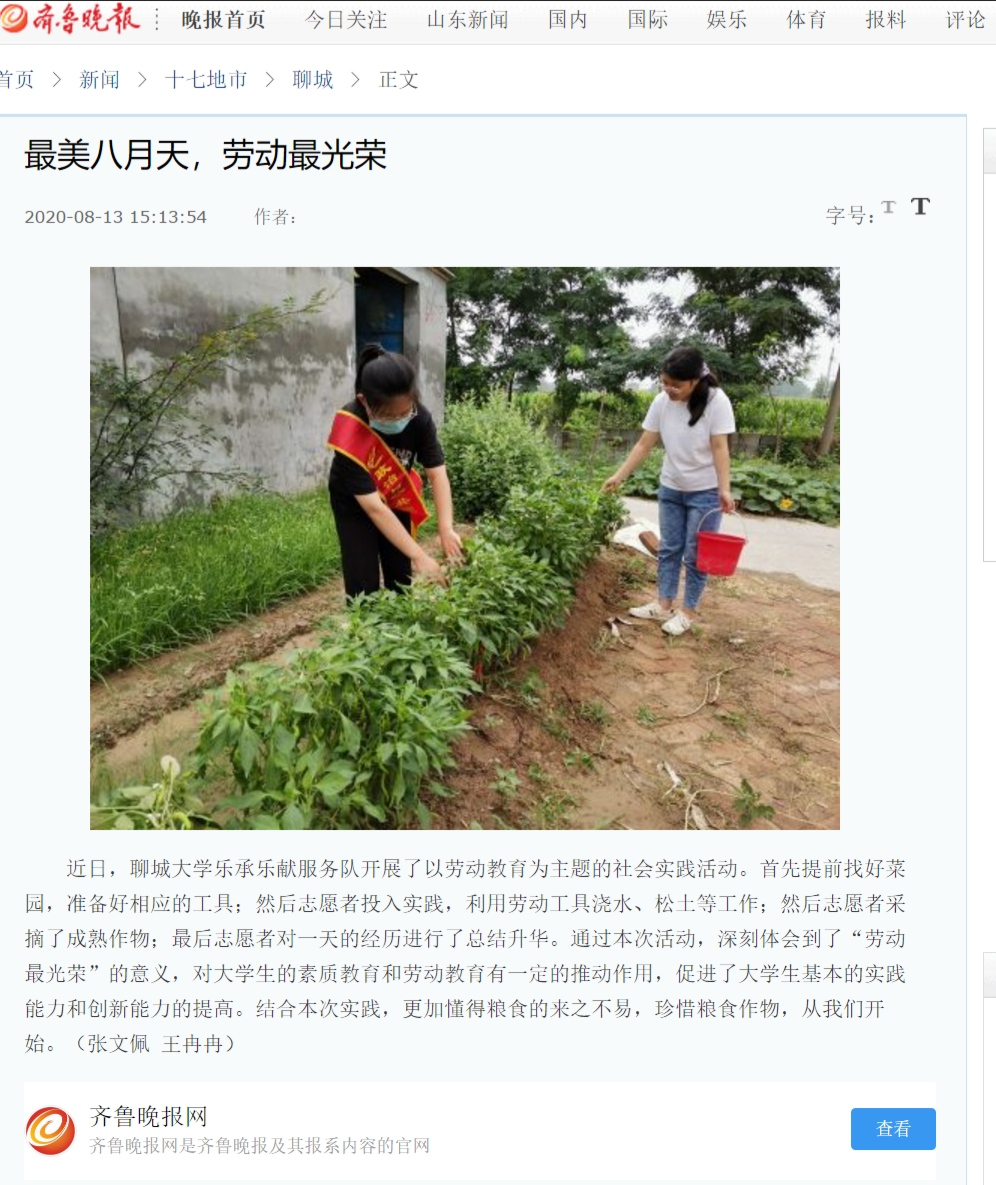 【齐鲁晚报】报道永利集团88304官网举办“最美八月天 劳动最光荣”活动