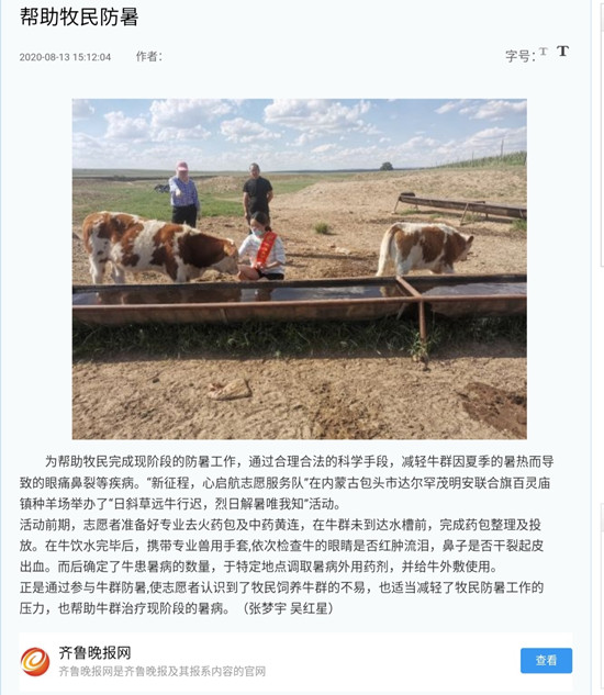 【齐鲁晚报】报道政管学院举办“帮助牧民防暑”活动