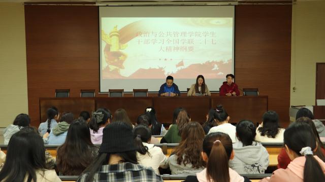 为深入学习贯彻习近平总书记致全国青联十三届全委会和全国学联二十七大的贺信精神,全面贯彻落实全国学联二十七大精神,激发永利学生以拼搏的精神、奋进的姿态谱写青春之歌。10月12日,永利于东校区6#C106组织学生会及主要学生干部学习全国学联二十七大精神纲要,政管学院团委辅导员徐娜、学生会执行主席张宝睿、王慧芳、王春华带领全体学生会骨干共同参与学习。