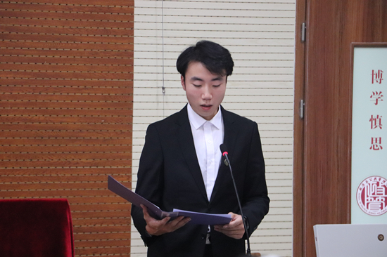 2021届学生会执行主席张宝睿代表新一届学生会发言,对上一届学生会工作表示肯定,对学生会未来的工作内容和前进方向做出保证。张宝睿表示新一届学生会一定会做到强化思想引领,做思想建设标兵;深化服务宗旨,引进创新源头活水;明确奋斗目标,推动改革有效进行。