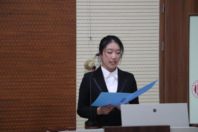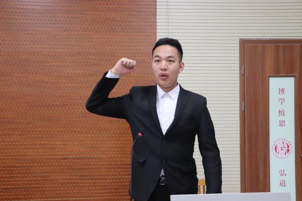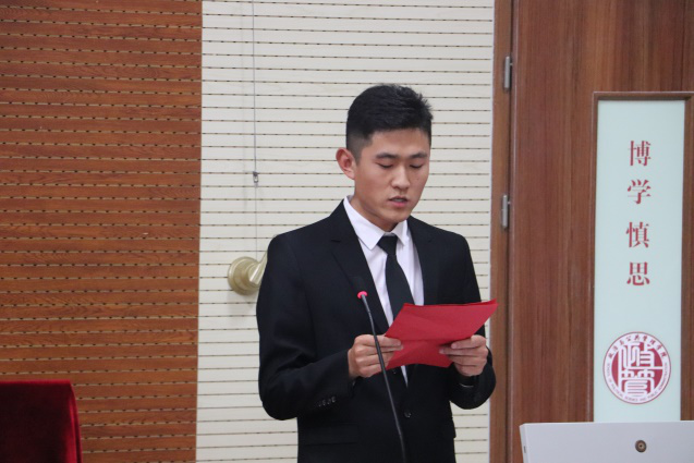 第一阶段最后一项工作人员宣读《学生会、研究生会干部自律公约》。由2021届学生会执行主席王春华领誓,全体学生干部起立宣誓。