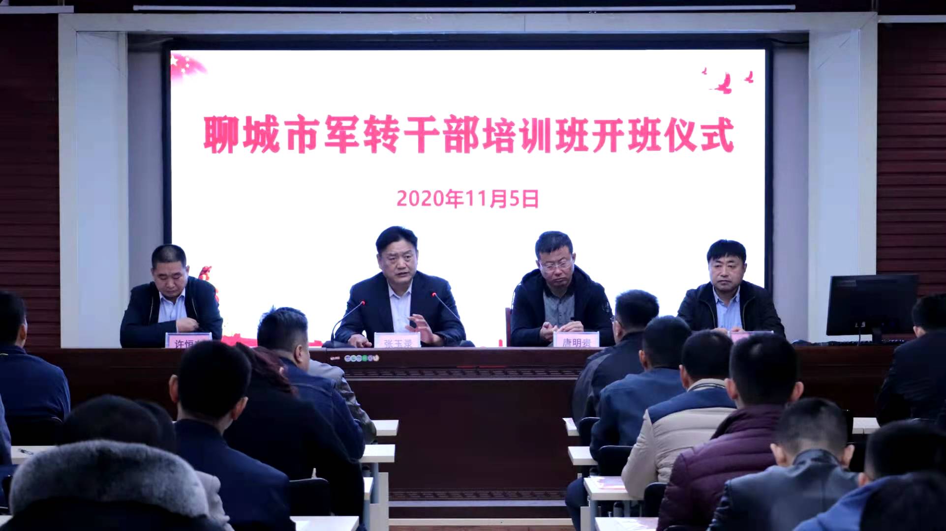 11月5,聊城市军转干部培训班举行开班典礼。聊城市退役军人事务局局长张玉录、副局长许恒友,永利集团88304官网院长唐明贵、双拥学院院长秦正为及参训学员50余人参加开班典礼。
