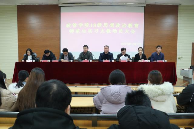 本次动员大会由各位老师围绕支教相关事宜对同学们进行全面指导,会议首先由政管学院院长唐明贵作实习支教动员讲话,他就师范生培养方案以及教师能力强调实习支教的重要意义,强调同学们做好吃苦、教学两个准备,满怀信心、爱心、耐心履行师范生实习职责,并对全体同学表达衷心祝愿。政管学院党总支副书记、副院长明辉作实习支教学生安全事宜讲话,明辉书记向同学们明确要做好疫情防控措施,坚持平安日报告制度;同时,他鼓励同学们要志存高远,实践与学习同时进行。会议进行第三项,学院副院长刘子平作实习支教政策解读及相关要求,他根据公费师范生与非公费师范生的培养方案分别进行政策解读,他特别指出支教实习对于获得教师资格证的重要性,他要求同学们在实践中增长教学、教研等专业技能,并且可以将实践与毕业论文选题结合起来,给予同学们详细指导。会议进行第四项,由李梅娟老师介绍山东省师范类从业教师技能大赛事宜,她从选拔方法、准备内容、赛事奖励展开介绍,并表示学院将从人力、物理、财力给予全面支持。会议最后,同学们共同观看往年实习支教记录视频,感受支教经历的宝贵意义。