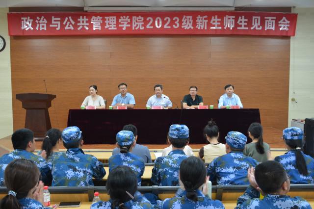 见面会从庄严奏唱国歌拉开序幕,学院院长于学强对2023级新生的到来表示热烈欢迎,就学院基本情况向新生介绍,帮助新同学更加深入地了解学院。延玥博士作为教师代表上台发言,用真实案例向同学们阐述大学四年的重要性,劝勉同学们培养自控力,避免误区。2021级7班行政管理专业的鲍如意作为老生代表发言,分享了关于大学的经验和心得。2023级2班政治学、经济学与哲学的胡斯冠作为新生代表上台发言,表达了对学院的美好祝愿,以及对未来大学实现梦想的期望。最后学院党委书记李士峰为见面会做出了全面细致的总结,勉励同学们要认真学习专业知识、坚持不懈、学会沟通,在大学生活中不断完善自己,为未来打下坚实的基础。随后,见面会进入下一阶段,由团委书记于进向新生介绍学院各项规章制度以及考勤标准,对新生的日常行为规范做出要求。