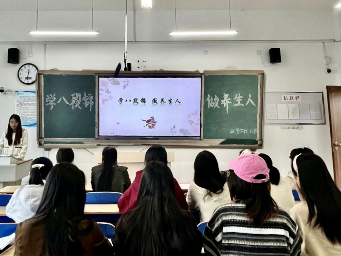 主讲人陈建鲁先与同学们分享关于八段锦的故事,让同学们初步了解八段锦,又“八段锦的起源”为切入点,通过文字、图片、视频相结合的方式对八段锦的历史相关知识进行讲解,增加同学们对八段锦的认识并进一步提高同学们对中国古代传统文化的了解。随后,陈建鲁为大家播放视频,同时进行演示八段锦的动作要领,让参与者仔细学习主讲人陈建鲁邀请参与者上台进行练习,并对其动作进行指导,指导过后,参与者向大家分享动作要领以及一些从中获得的感悟。陈建鲁参与者进行问答互动,参与者对于八段锦的学习提出了自己的见解,同学们都积极互动,并踊跃发表自己的看法。陈建鲁谈及学习八段锦的意义,并呼吁大家多多了解中国古代传统文化。参与者马文秀表示,这次八段锦活动的举办,增进同学之间的感情,促进大家对中国优秀传统文化的认识。相信通过这次学习八段锦活动的举办,越来越多的人会学习并喜欢上八段锦。