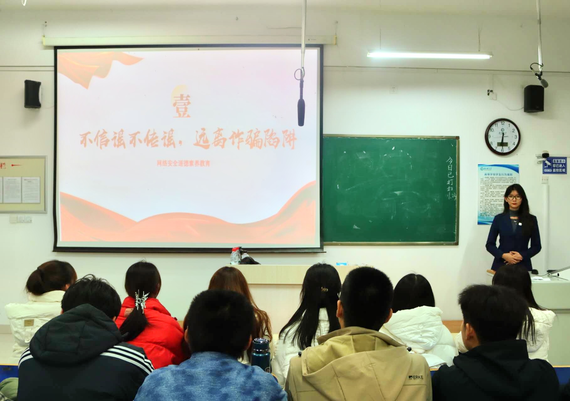 为普及网络安全知识,各班还开展了“网络安全”主题班会课,辅导员们向学生细致解读网络安全知识,结合具体事例,让学生学会个人信息的保护、网络诈骗的辨别等知识,进一步让学生认识到网络上存在的安全隐患,培养学生绿色上网、文明上网的意识和良好习惯,增强学生网络安全防护能力。