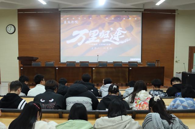 本次放映的电影是《万里归途》。电影放映前,刘紫玮对此次观看的影片作简单的介绍,强调同学们要从影片中领悟爱国主义精神,为社会和国家做出力所能及的贡献。电影以真实故事为背景,讲述了在努米亚共和国爆发战乱的情况下,外交官宗大伟与成朗前往协助撤侨,本来能够安全撤离的他们无法忘却身上的责任,义无反顾地闯入烽火战区展开救援的故事。影片以小见大,从宏大叙事转变到个体小我,用隐入的方式展现了中国真正的实力,作为主旋律影片,它将艺术性与思想性完美地融合在一起,让观众与影片产生深刻的情感共鸣。电影在发扬以爱国主义为核心的民族精神的同时,也诠释了人民至上、不惧磨难的中国精神,展示了中国撤侨行动中所遇到的种种困难以及外交官在维护国民安全和权益方面所做的努力。观影结束后,观看者许文慧表示,该电影不仅展现人内心温情的一面,更表达了对祖国崇高的敬意,让观众深刻地感受到祖国的强大,有利于增强学生的爱国情怀,鼓励学生积极承担自己的责任。