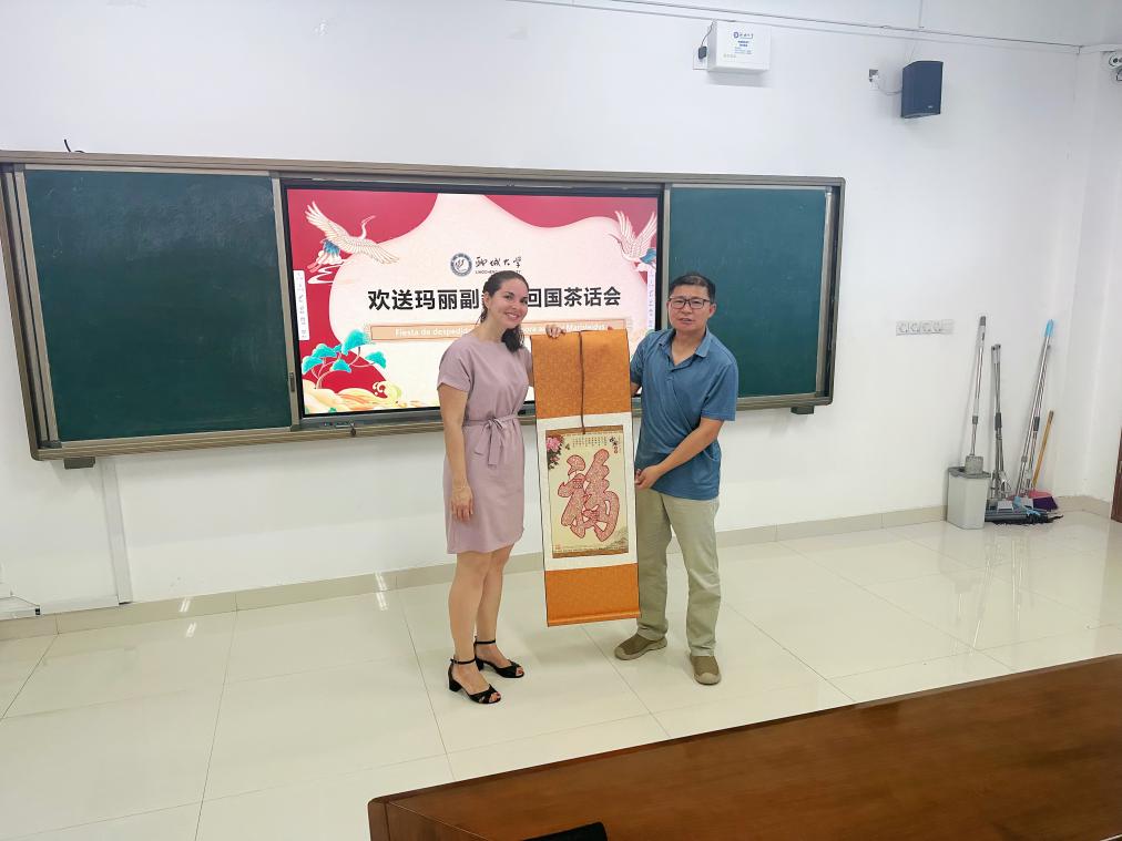 在接下来的交流环节中,于学强从四个方面总结了玛丽在校九个月的贡献:一是强化了永利的教学团队,师资队伍的国际化更为凸显;二是提升了加勒比研究中心的学术力量,形成外籍专家+本国专家+研究生队伍的新格局;三是丰富了永利研究生课堂内容,开展了10次有关拉美的专题讲座;四是深化了中古、聊大-哈瓦那大学的合作,助力永利哈瓦那学院建设。玛丽副教授表示,九个月时间使她深入了解了中国文化,充满了对这个国家人民的热爱;她感谢在华期间学校和学院对她的帮助,愿意继续保持与中心的联系,也邀请大家访问她们的国家和学校。