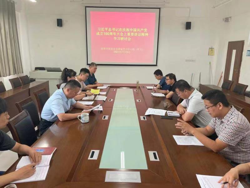学习好、宣传好、贯彻好习近平总书记“七一”重要讲话精神,是全校党史学习教育重中之重。为了引导广大党员、教师以史为鉴、开创未来,把学习成果转化为奋进新征程、建功新时代的实际行动,7月15日,永利集团88304官网于东校区6#C302组织召开习近平总书记在庆祝中国共产党成立100周年大会上重要讲话精神学习研讨会。学院理论学习中心组成员(扩大)参加,党总支副书记、副院长明辉主持会议。