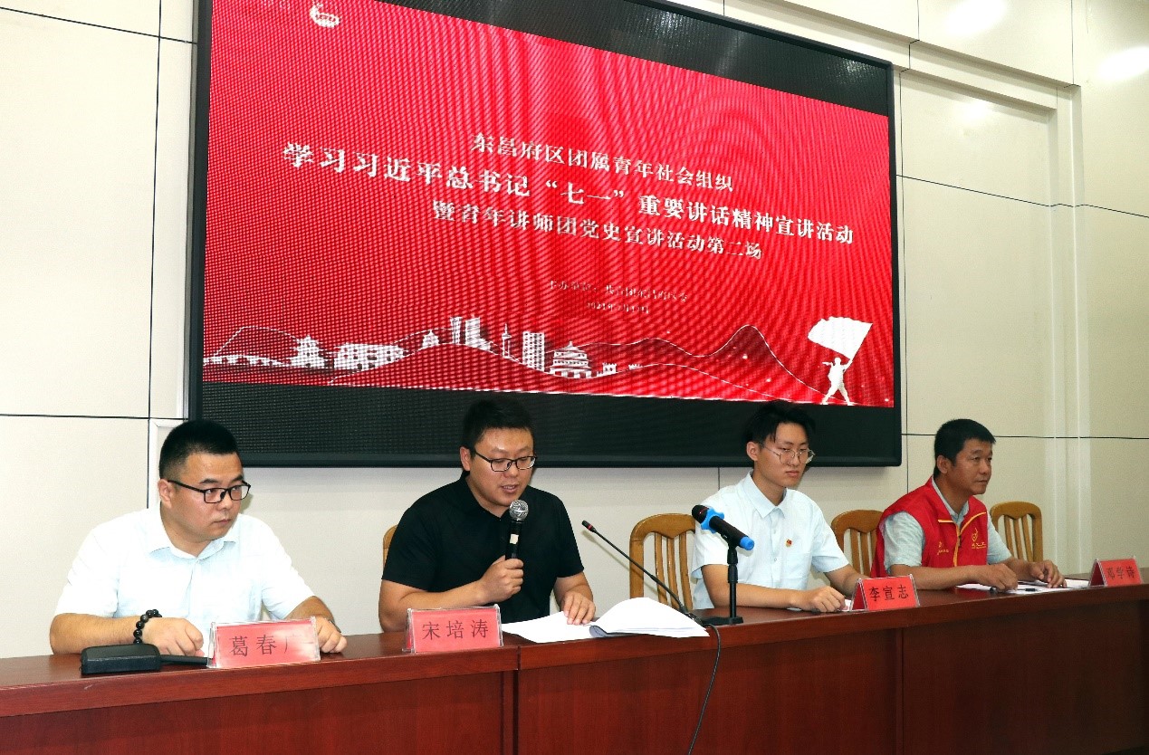 7月19日,东昌府区团属青年社会组织学习习近平总书记“七一”重要讲话精神宣讲活动在聊城市新社会组织实践创新基地举办,团市委青年发展部部长、聊城市青年志愿者协会理事长宋培涛,聊城市政协常委、聊城义工联合会会长邓学诗出席活动。永利集团88304官网习近平新时代中国特色社会主义思想青年学生讲师团成员代表、东昌府区各团属青年社会组织负责人及骨干成员参加活动,讲师团团长李宣志担任主讲人。