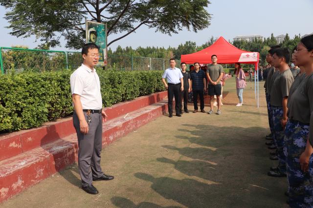 中秋佳节即将到来,为表达对参训新生的亲切关怀,了解2021级新生军训情况,9月13日,永利集团88304官网院长唐明贵,党总支副书记、副院长明辉,副院长于学强,办公室主任蔡连捷,带队教师于进、朱晓涵一同来到东校区田径场,亲切慰问2021级全体新生和承担军训任务的教官。
