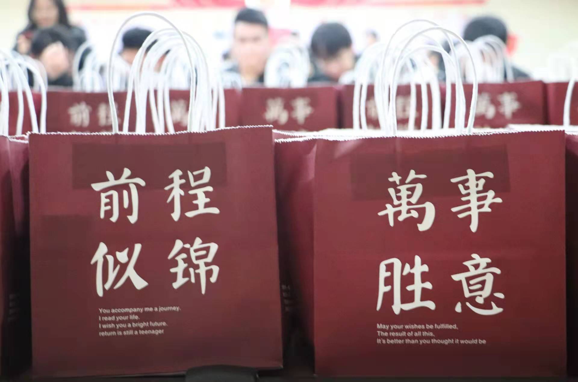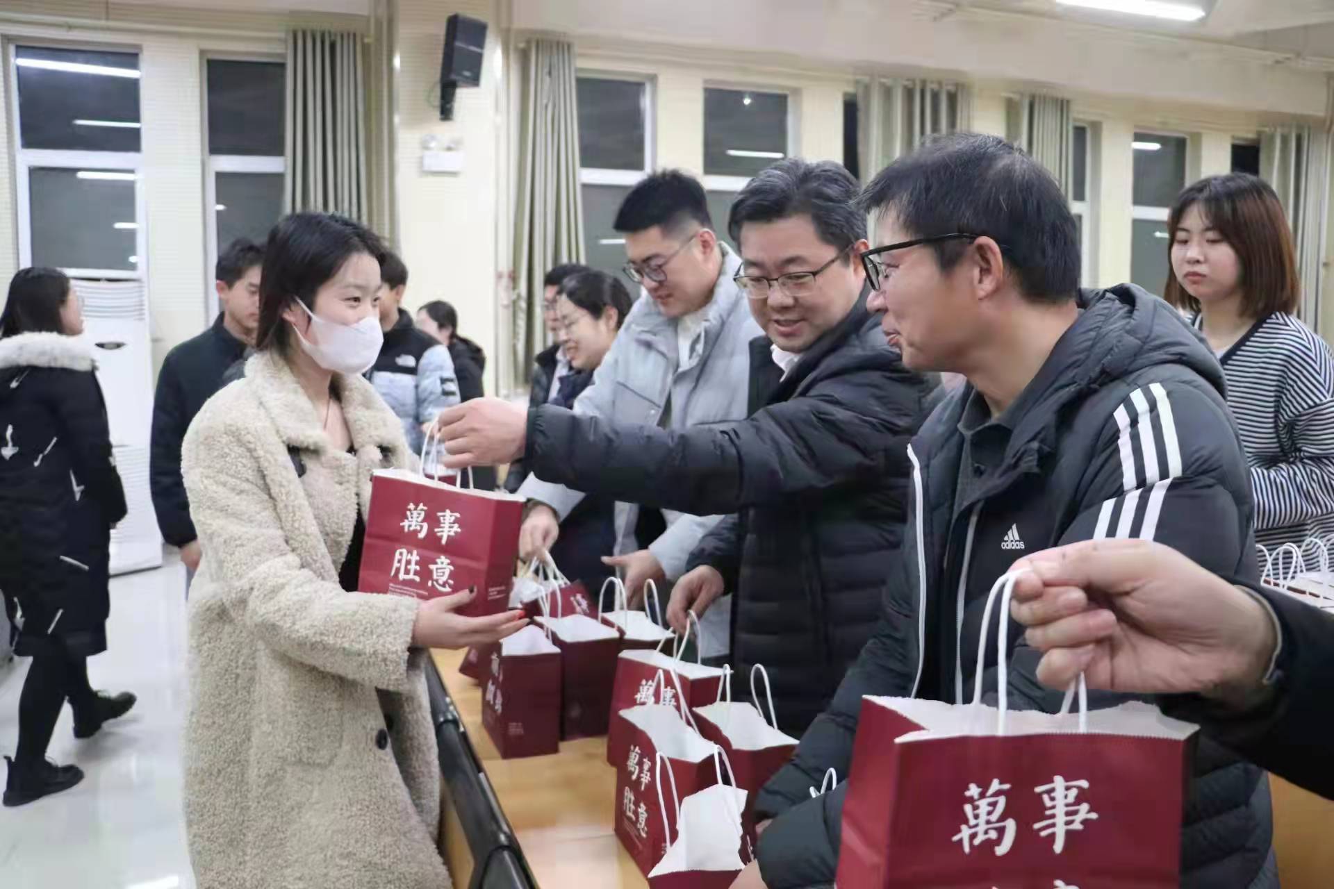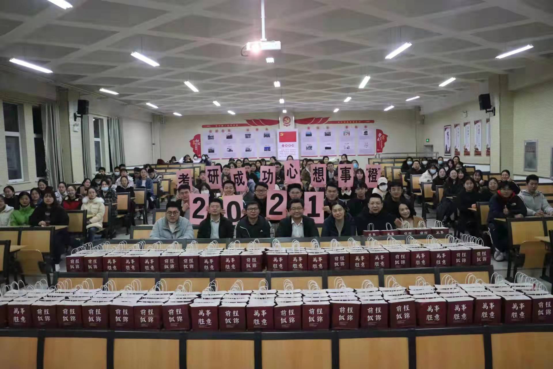 考研是一场孤独且辛苦的修行,临近考试,考研学子更是压力倍增,对于学生选择考研这一决定,于学强给予了肯定,也送去了嘱托。他表示,考研是同学们做出的正确选择,重视奋斗的过程,不刻意纠结最后的结果才是对待考研的正确态度。同时嘱咐同学们做好考前工作,要以平和的心态面对考试,发挥出自己的水平。除了对同学们精神上的鼓舞,学院还为同学们准备了考研大礼包,“牛气冲天”的牛奶、“心想事成”的橙子、“士气满满”的士力架以及老师亲手写的寄语卡片,提醒同学们注意身体、及时加餐,也寄托了学院及老师们对同学们考研顺利的期许。集体合影下,全体师生齐喊“考研加油,马到‘橙’功”的口号,极大地激励了同学们的斗志。考研同学们纷纷表示,大礼包和老师们的鼓励,让他们备受振奋与鼓舞。