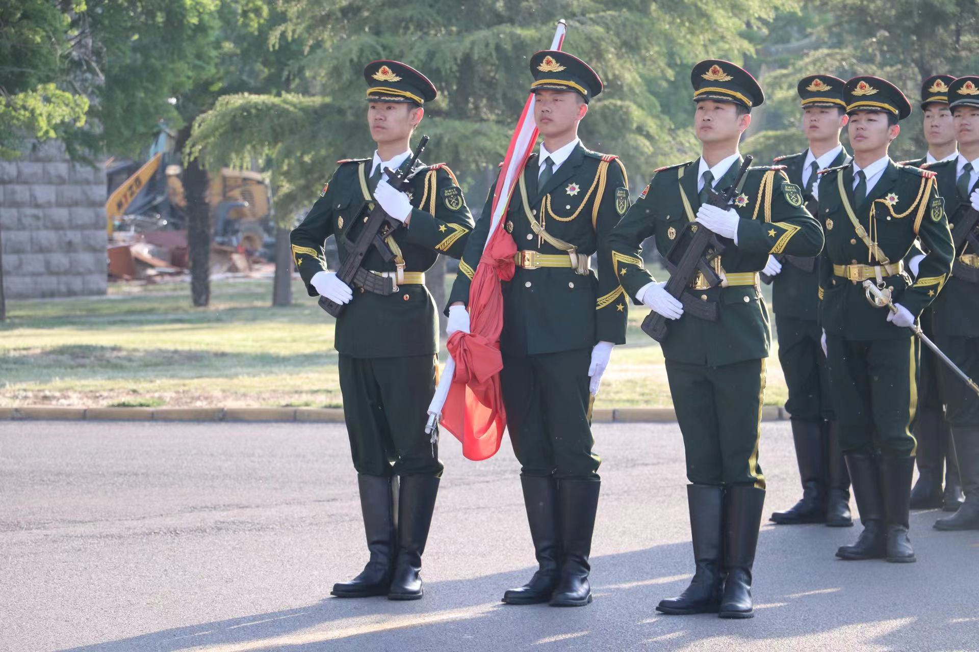 7点钟,升旗仪式正式开始,国旗护卫队队员昂首阔步、正步铿锵、气势宏大,打破寂静陈晓,护送国旗入场,《义勇军进行曲》铿锵有力的旋律鼓舞全体师生,全体肃立,行注目礼,鲜艳的五星红旗在庄严的国歌声中冉冉升起,一句句歌词,展现出高度的爱国热忱,为伟大而繁荣的祖国深深祝福!