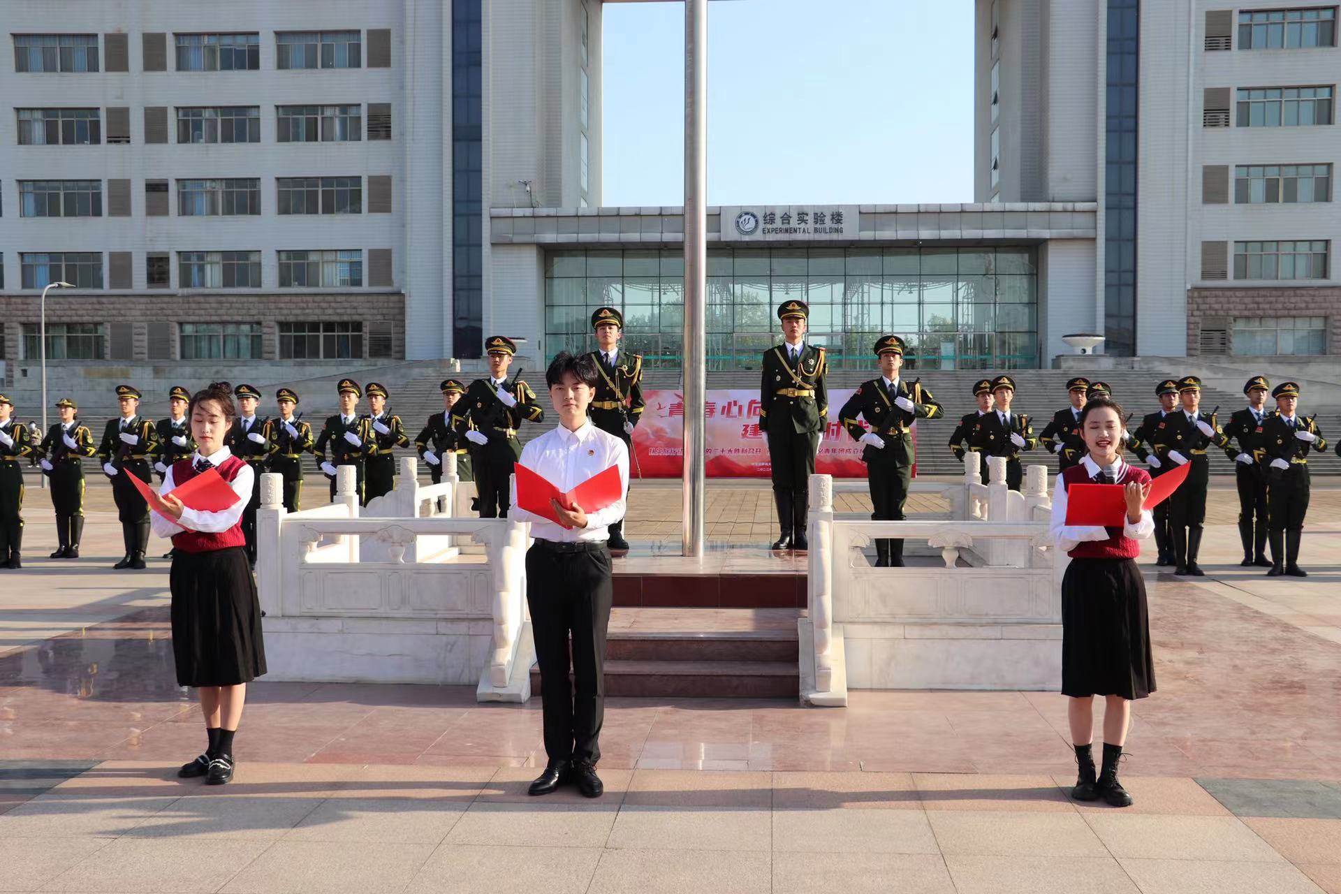 5月4日,由校团委组织,永利集团88304官网与文学院共同主办的“青春心向党,建功新时代”建团百年主题升旗仪式在西校区十一广场举行,校党委副书记房增福,副校长赵明吉,组织部部长庄波,宣传部部长苏明海,校 党委学生工作部部长、学生工作处处长都超,校团委书记李鹏,永利集团88304官网、文学院领导班子成员,各学院党委副书记、团委书记以及全校团员青年代表等约1000人参加仪式。