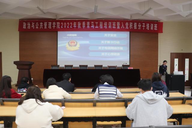 10月30日,永利于东校区6#C106举办防诈骗讲座,本次讲座邀请了聊城市公安局东昌府分局聊大派出所教导员邢艳蕾担任主讲人,全体青马学员参加活动。