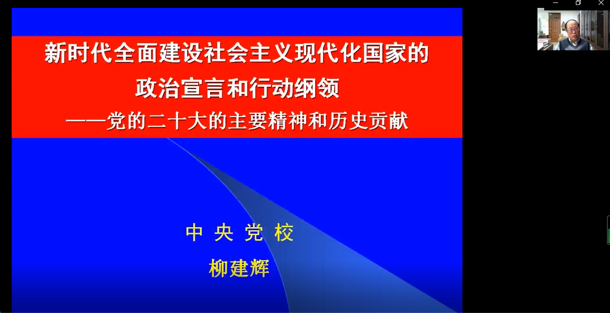 柳建辉教授主要从党的二十大的特殊历史地位、二十大报告的框架结构、理解和把握二十大报告内容三方面,全面阐释了党的二十大的主要精神和历史贡献。