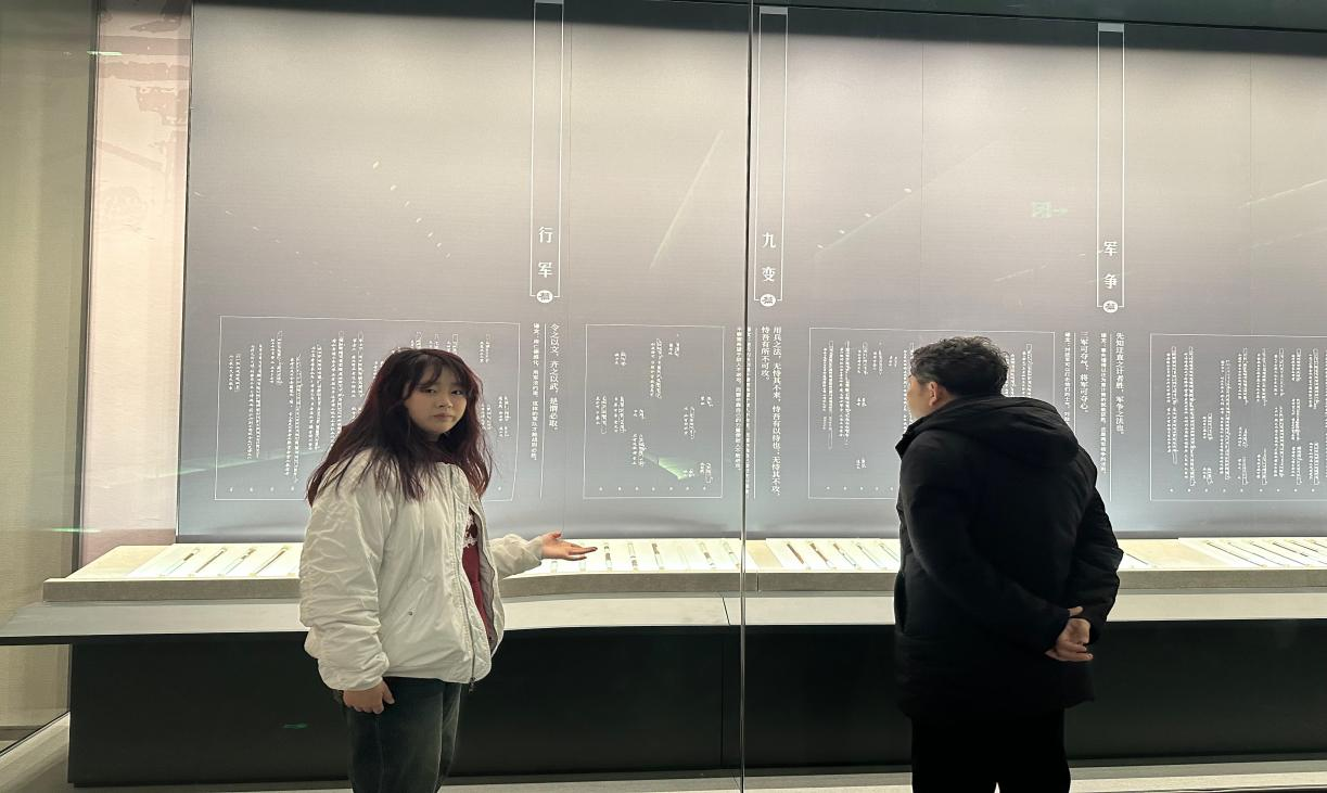 活动负责人孙悦与银雀山汉墓竹简博物馆的工作人员进行协商交流,引导参与者有序进入银雀山汉墓竹简博物馆。孙悦在大厅介绍此次活动流程,包括欣赏汉墓竹简文化遗址与真迹、讲解历史渊源讲解和历史文化重现等三部分。工作人员带领参与者进入第一展区,欣赏60年代临沂专业考古人士对汉墓所挖掘的坑位,该坑位出土较多的是汉代竹简,最为出名的便是《孙子兵法》。此外,馆内还珍藏古钱币、铜器、碑帖、玉器、瓷器、印章等各类珍贵文物。孙悦为参与者详细介绍《孙子兵法》的大致内容、历史背景、作者简介等。参与者与孙悦积极交流互动,尝试利用VR还原历史情境,感悟三国与汉代文化的博大精深。孙悦提问有关竹简的问题,参与者们互相讨论学习,踊跃回答问题。张润文表示,此次活动的举办,让她深刻领略到琅琊文化的风采以及底蕴,并将继续深入了解琅琊文化,了解它背后的故事。