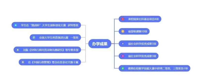 近年来,本专业承担国家社科基金项目4项,省部级课题10项,出版《异体行政问责法制完善研究》等专著多部,在《中国行政管理》等杂志发表论文数十篇,获得省社会科学优秀成果3项。教师在校教学技能大赛中获得二等奖、三等奖各1项,多人次获得良师益友、教学名师、师德标兵、优秀共产党员等荣誉称号。学生在“挑战杯”大学生创新创业大赛、全国大学生英语演讲比赛中获特等奖、一等奖多次,在湖南大学、中南财经政法大学等举办的夏令营活动中多次获得“优秀营员”称号。