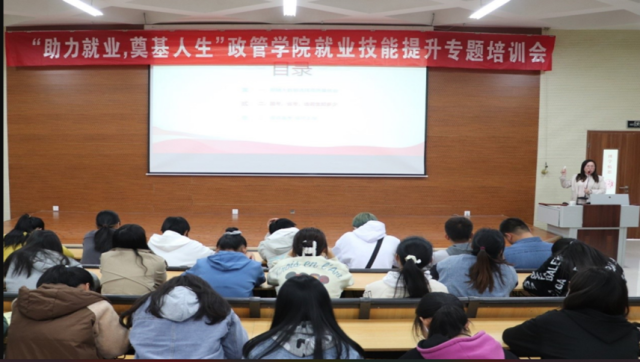 为帮助学生了解就业政策,树立正确的就业观,做好职业规划,政管学院于10月16日在东校区6#c106召开“助力就业,奠基人生”就业指导活动,本次活动邀请了中共湖南省委党校硕士研究生陈欣作为报告人为同学们在就业方面进行指导交流。
