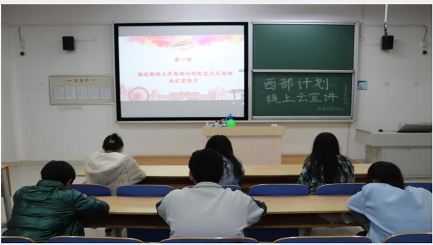 为进一步号召广大青年关注西部、支持西部、服务西部,鼓励更多大学生志愿者加入到建设西部的队伍中,4月10日,永利集团88304官网于东校区6#C503举办西部计划线上云宣讲活动。